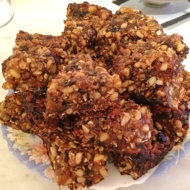 Remove the dish from the oven and let it cool slightly. After that, cut into squares measuring 4x4 cm (1.6x1.6 inches). Place the warm bars on a plate and refrigerate for 2-3 hours.
