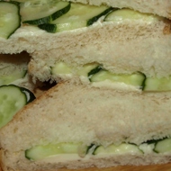 Layer the cucumber slices on top of the buttered bread slices. Sprinkle with salt.