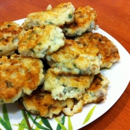 Form small patties and coat them in breadcrumbs. Fry the patties in hot vegetable oil for 7 minutes on each side.