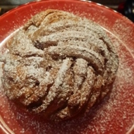 Cut the roll lengthwise, leaving 1-2 cm uncut at the end. Twist the two halves of the roll together. Then shape it into a closed circle. Brush the top with the remaining filling. Bake at 392°F for 20-25 minutes. Before serving, you can sprinkle the pastry with powdered sugar. Enjoy your meal!