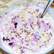 In your favorite bowl, place the cereal, flax seeds, and dress with honey and natural (or Greek) yogurt. Let it sit for 10–15 minutes to allow the cereal to swell and soften.