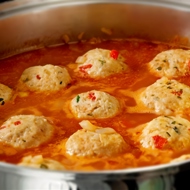 Add the meatballs (they can be frozen or pre-made) to the boiling water, cook until done (about 15 minutes), skimming off the foam.