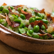 Fava Bean Appetizer with Pancetta in White Wine