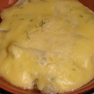 Boil the fennel in water until tender. Place in a greased baking dish.