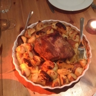 Cook the meat with the potatoes for another hour. Don't forget to drizzle the potatoes with fat and juice. I do this about 3-4 times during the hour.