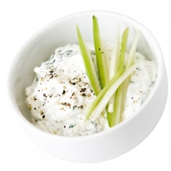 Add the parsley, dill, mint, and chives. Blend lightly again. Chill before serving.