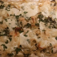 Fettuccine baked with shrimp and cheese