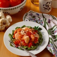 Fettuccine with Shrimp in Thick Tomato-Saffron Sauce