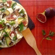 Arrange thin rings of fig, zucchini, and mushrooms on the base.