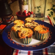Grease the baking molds with the remaining olive oil and distribute the dough into them.