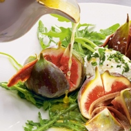 Fig with Anchovies, Cream Cheese, Honey Sauce, and Arugula