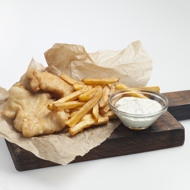 Fish and chips is one of the main recipes gifted to humanity by England. Chips refer to French fries there. We fried the fish in beer batter, as many do in Britain: it’s tastier that way.