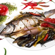 You can prepare any fish this way — trout, salmon, or snapper. Sea bass is not a traditional Georgian fish, but it turned out to have a distinctly Western Georgian flavor.