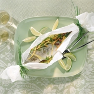 Clean the fish, leaving the head and tail. Cut along the belly and remove all bones.