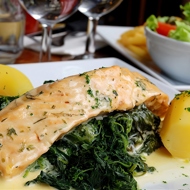 Season the fish fillet with salt and pepper, coat in flour, and lightly fry on both sides in oil.