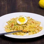 While stirring, the fish breaks into flakes and becomes one with the entire dish. The herbs and lemon will bring freshness and elevate the flavor to complete harmony. Half of a soft-boiled egg will be a festive finishing touch.