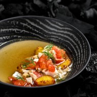 Fish Soup with Northern Fish, Salmon Roe, and Tomato