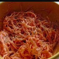 Divide the sour cream into two equal parts, adding carrot or apple to each and mix.