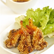 Transfer the shrimp to a warm plate, sprinkle with chopped green onion and sesame seeds. Serve immediately.