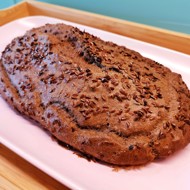 Knead the dough thoroughly, shape it into a loaf on parchment paper with wet hands, and sprinkle with flax seeds.
