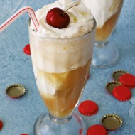 Scoop several balls of ice cream into the glass. Carefully pour Nuka-Cola into the glass. Gently stir and serve.
