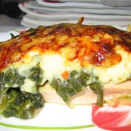 Conventional convection oven: bake at 200°C for 25-30 minutes. Oven: After adding spinach, place the dish back in the oven to simmer for 3-4 minutes, until the spinach is cooked. Place the dish on the lower rack of the oven for roasting and leave it for 20-25 minutes, until a golden crust forms.