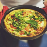 Pour the egg mixture over the filling in the bowl and place it in the oven. Bake at 392°F.