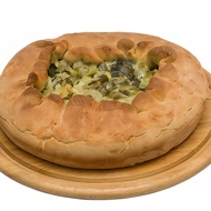 Roll out the dough and place it in a greased pie dish, pricking it with a fork. Bake in the oven at 356°F. After 15 minutes, remove from the oven, brush with a small amount of beaten egg, and return to the oven for another 5 minutes.