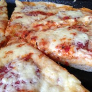Fluffy Pizza with Salami and Two Types of Cheese