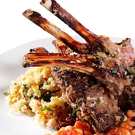 On plates, serve the tabbouleh and top with 2 lamb chops each.