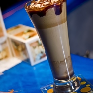 In a blender, combine ice, liqueur, coffee, and milk. Blend everything well.
