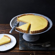 Pour the lemon custard into the cooled base and chill the lemon tart for about 2 hours. Then remove the base from the pan and serve with whipped cream.