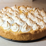 Assemble the pie. Spread the cream on the crust, and pipe the meringue on top. Place the pie in the oven for 3-4 minutes to lightly brown the meringue.