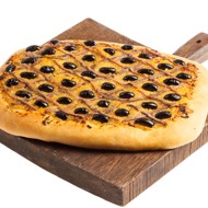 Place the anchovies and olives on the onions. Brush the edges of the dough with olive oil.