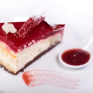 Cook the pitted red cherries in a mixture of water, wine, sugar, cinnamon, and the zest of half a lemon for about 15 minutes.