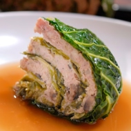 Peel one onion, finely chop it, add to the meat mixture, season with salt and pepper, and mix well. Remove some cabbage leaves from the center of the head and place about half of the meat mixture inside. Wrap it with the nearest leaves. Carefully fold the leaves and layer the meat mixture between them until it is finished. Once the cabbage is fully stuffed, tie it with culinary twine to maintain its shape.