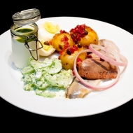 This salad is served with meat and fish patties, fried meat and fish, or as a standalone dish.