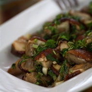 In a small bowl, combine the thinly sliced mushrooms and parsley.