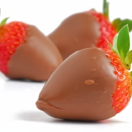 Holding the strawberries by the stems, dip them three-quarters into the chocolate and return them to the parchment. Chill until set for about 1 hour.
