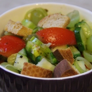 Fresh Vegetable Salad with Croutons, Green Grapes, and Mint