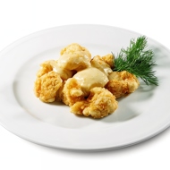 Heat the oil in a deep skillet to 356°F. Dip each floret in flour, then in beaten egg, and fry for a few minutes until the florets are golden. Do not fry too many at once – it’s better to do it in batches.