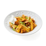 Add the onion and sauté, stirring, for another 10 minutes, until the potatoes are tender and the onion is golden.