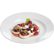 Arrange the cheese on a plate, drizzle with cherry chutney, top with crushed pistachios, add some fresh cherries, garnish with torn basil, and sprinkle with small slices of fresh, unroasted cheese.