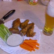 While the wings are frying, slice the carrots and cut the celery stalks into 7-8 cm pieces.