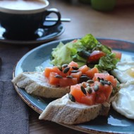 Fried Eggs and Toast with Guacamole, Cream Cheese, and Lightly Salted Salmon