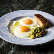 Fried Eggs with Potato Gratin and Avocado