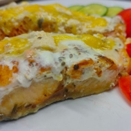 The fish in this recipe is chum salmon, which is not very fatty or thick, so it's quite simple. This dish is very tasty and quick to prepare; it's better to use thawed or chilled fish. Mayonnaise can be used instead of sour cream. The fish seasoning contains salt, so it's better not to over-salt. It's best to serve the fish prepared this way with fresh vegetables. Enjoy your meal.