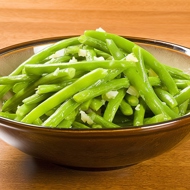 Heat oil in a skillet, add roughly chopped garlic, and cook for a few minutes until it turns slightly brown. Remove the garlic. Add the beans to the skillet and stir-fry quickly to prevent the pods from breaking apart or burning. Serve immediately.