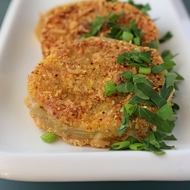 Heat the fat in a cast-iron skillet. Dip the tomatoes in the egg and coat them in breadcrumbs. Fry slowly in the fat on both sides until golden brown. Place the tomatoes on a plate.