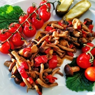 Rinse the honey mushrooms, dry them, and separate them. Cut long mushrooms in half.